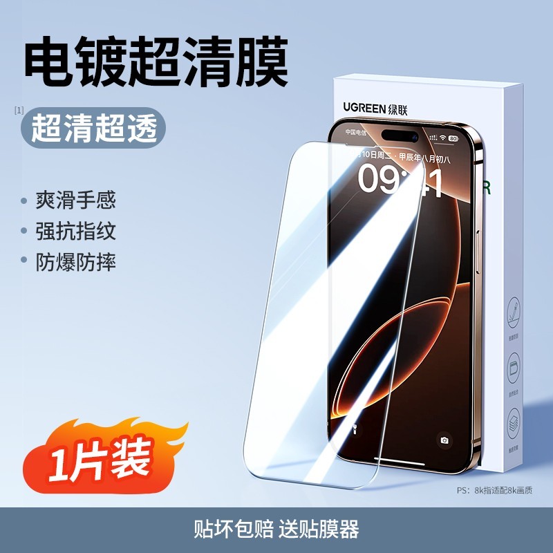 绿联GREEN的iPhone系列超清纳米钢化膜,2片装很划算。它具有众多优势,能防指纹防刮花,安装起来轻松容易,性价比超高,适配多种型号的iPhone,与手机贴合度很高,手感顺滑,还能高清显示,并且附送配件。不过也有小缺点,膜装的化纤套子严重掉毛,小毛不易清理。建议购买前先清理一下,也希望生产厂家能更换包装材料。这钢化膜是专为苹果手机量身定制的,贴的时候不会产生气泡,采用进口高铝材质,防爆抗摔,还能强抗指纹。
