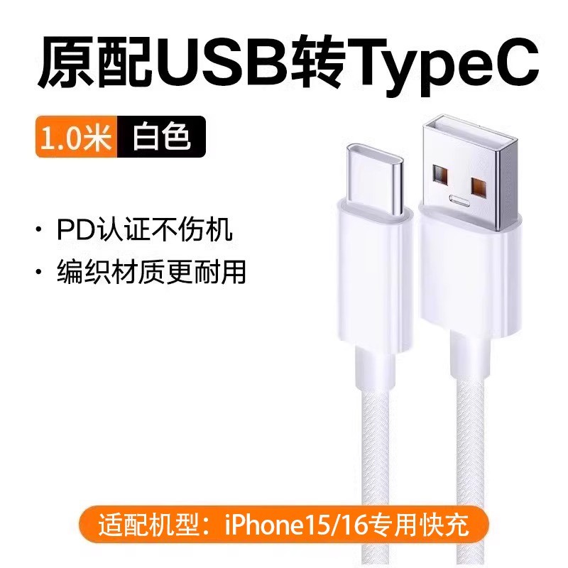 兆然适用苹果iPhone15/16的数据线兼充电器线来啦。它是usb转typec接口的,对于韩奕手机以及苹果iPhone15系列如15promax等,在车载充电方面表现优秀,还能用于CarPlay,并且是平板iPad的快充线。其为原配编织线,长度达1.0米。颜色分类为。