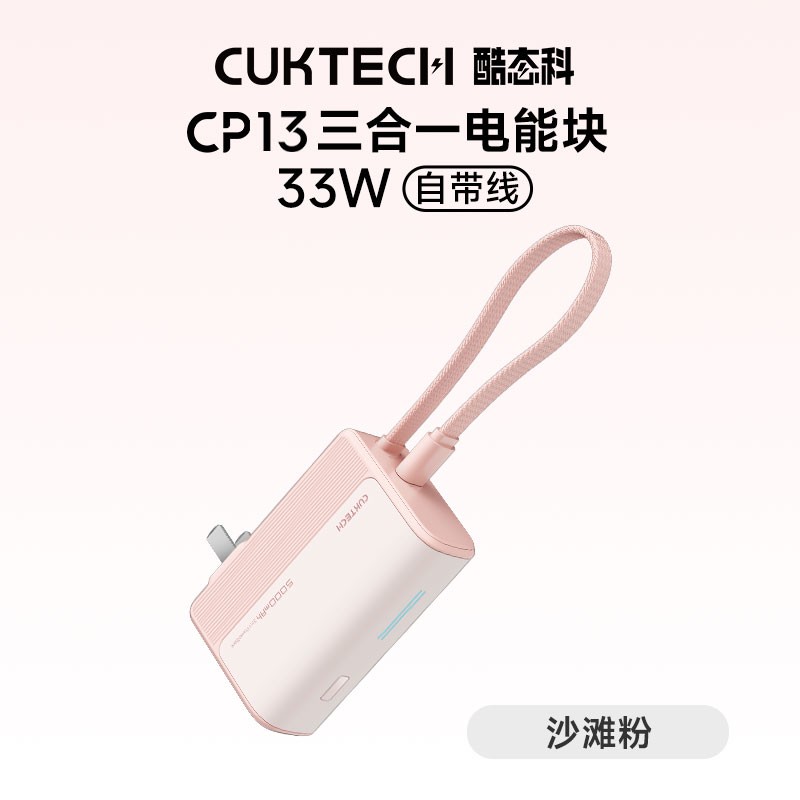 酷态科 CP13 三合一电能块 33W 自带线是一款高效便捷的充电设备,支持多种设备同时快充,最大输出功率可达33W,满足手机、平板、笔记本等电子产品的充电需求。自带多根充电线,兼容Type-C、Micro USB和Lightning接口,适配市面上主流设备。体积小巧便于携带,充电效率高,安全稳定,是您出行居家的理想充电伴侣。