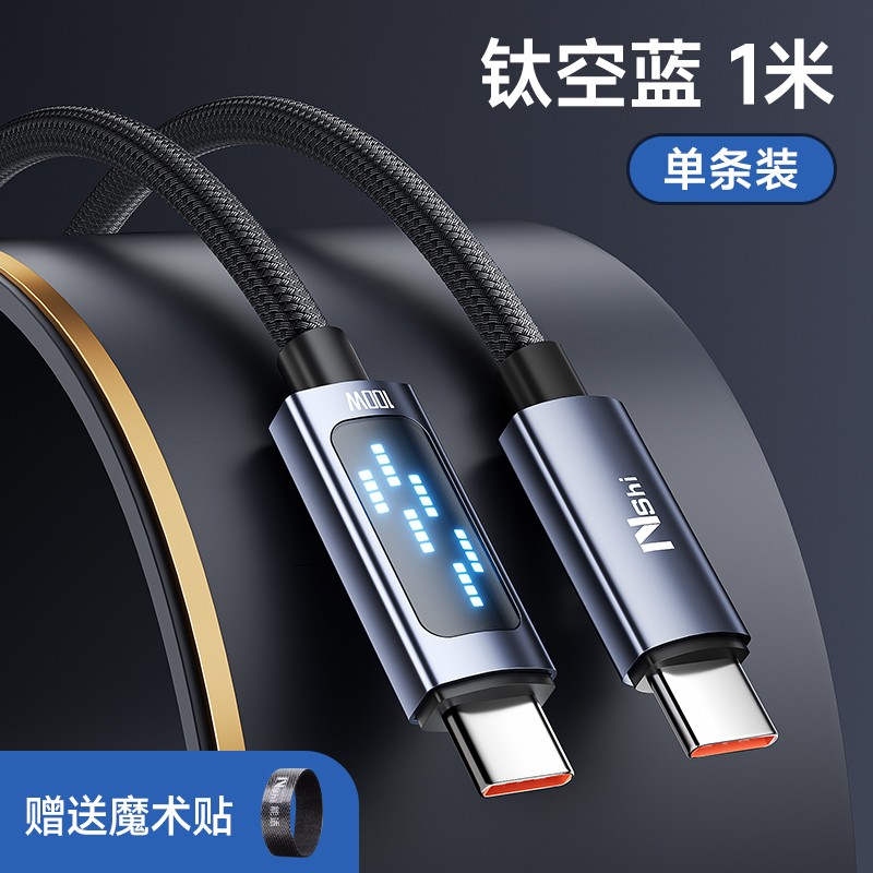 能适Nshi 100w超级快充数据线TypeC非常实用。它适用于华为、荣耀、小米、OPPO闪充、vivo等安卓手机。这条数据线带有智能数字显示以及显示灯,很是贴心。它可以当作66w的充电器线,满足你的快充需求。