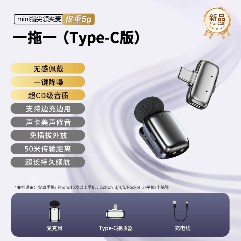 好牧人M6迷你麦克风是主播们的得力助手,专为手机直播、收音录音而打造。它是无线夹领式设计,使用起来非常方便。颜色分类中的黑色一拖一十分酷炫,而且小巧mini的造型不会给使用者造成负担。它还有令人惊喜的功能,比如一键降噪,能有效减少周围环境的杂音干扰,让声音更加纯净。并且能达到超CD音质,无论是直播还是录制声音,都能给你带来高品质的听觉体验。