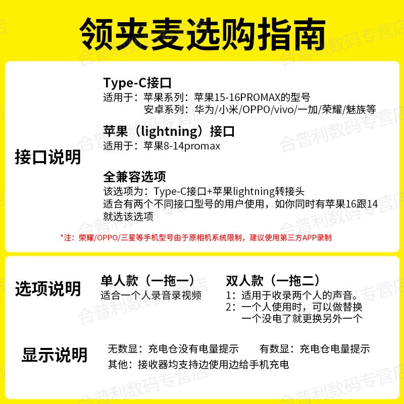 合普利手机直播录音拍视频夹领无线麦克风领夹式收音麦一拖二可是主播们的专用神器。它能够很好地满足手机直播、录音以及视频拍摄时的收音需求。这款麦克风采用领夹式设计,方便佩戴,一拖二的功能更是实用。