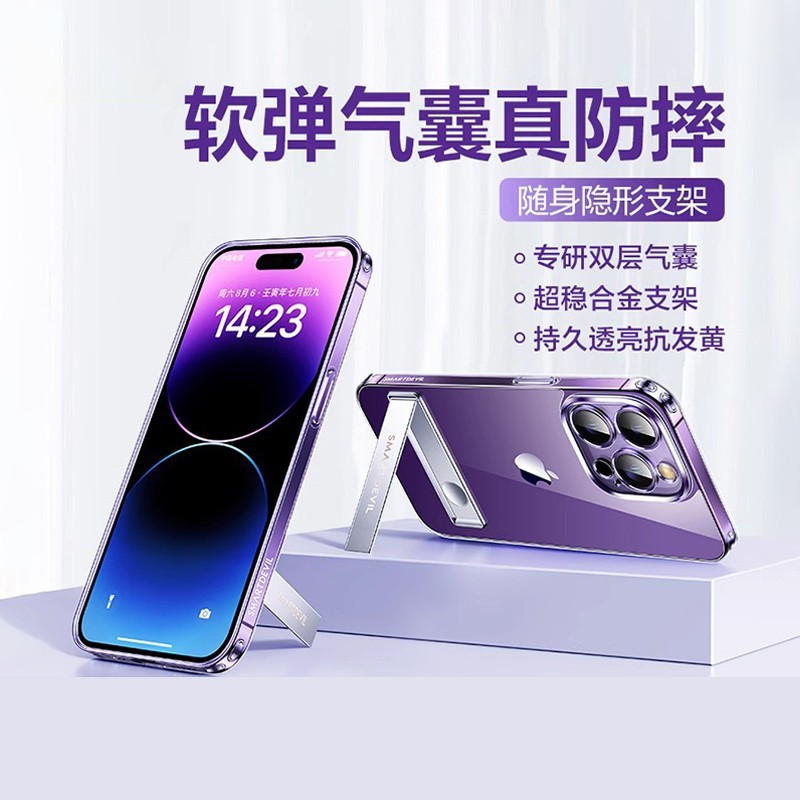 闪魔适用苹果iPhone14Pro手机壳新款上市,专为iPhone14Pro量身打造真机开模,精准匹配每一个按键与孔位,确保安装稳固贴合。手机壳采用超薄硅胶材质,手感柔韧舒适,透明设计尽显原机高级质感,同时具备出色的防摔抗压性能,四角加厚设计有效缓冲跌落冲击,全方位保护爱机安全。创新内置支架功能,可轻松展开横屏观影或视频通话,解放双手更便捷,且支架结构稳固,承诺不稳包退。磁吸设计兼容无线充电,无需取壳即可快速充电,使用更高效。