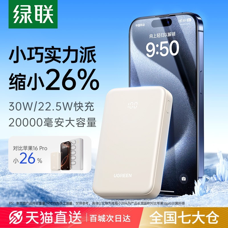 绿联PB508 20000mAh移动电源PD 22.5W是一款非常实用的移动电源。它拥有20000mAh的大容量,能够为你的电子设备提供多次充电,无论是手机、平板还是其他小功率设备,都能轻松应对。在充电速度方面,22.5W的PD快充功能,能让你的设备快速补充电量,大大节省充电时间。