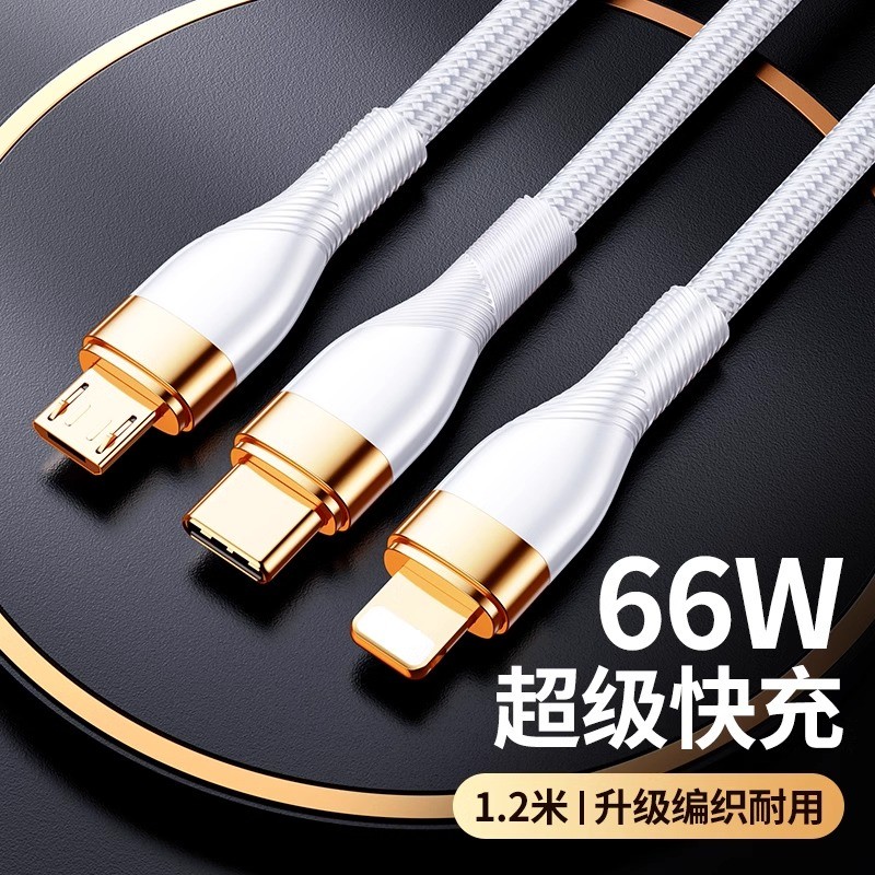 尼多利6A三合一充电数据线是一款非常实用的充电线。它适用于苹果、小米、华为等安卓手机,是一拖三的设计,带有type - c接口,能实现66W镀金快充。其为多功能多头,5a车载,具有3快冲功能。