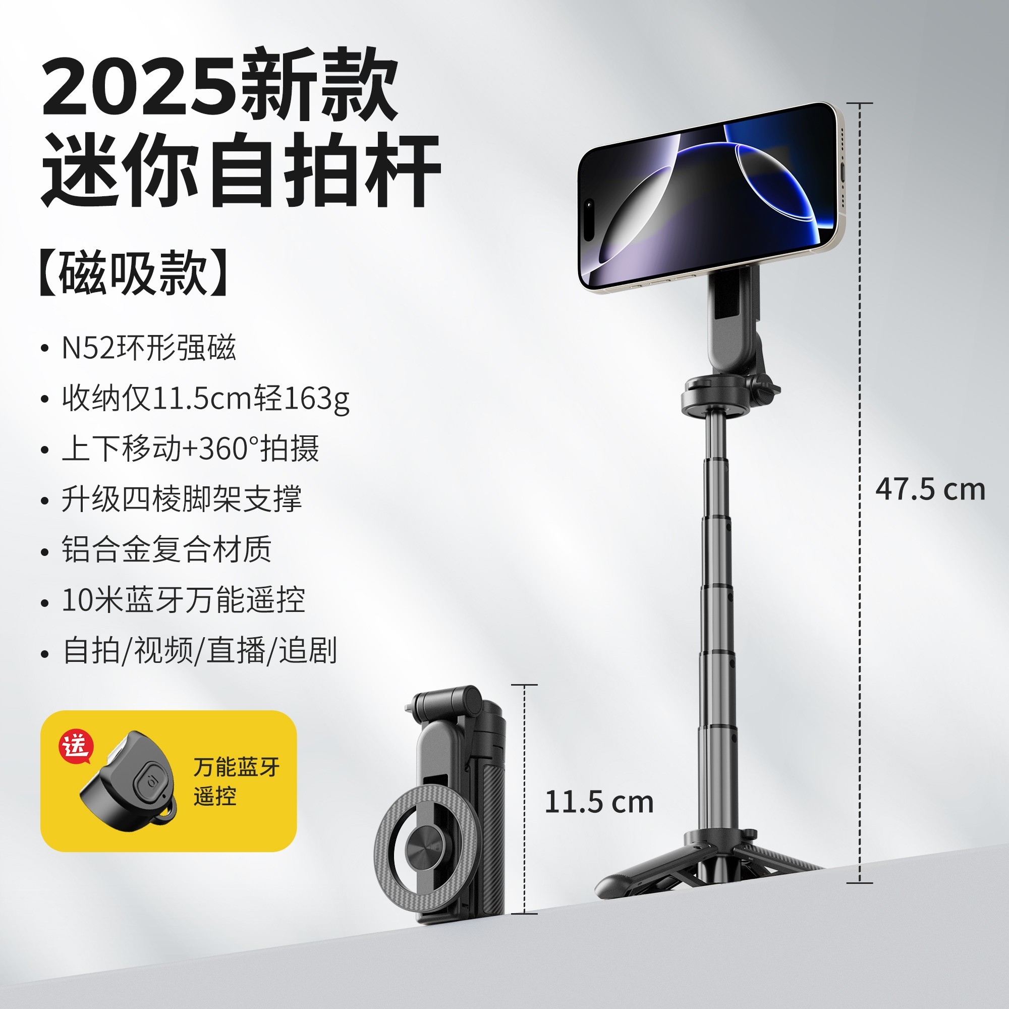 OldShark2025新款自拍杆是一款专为手机摄影爱好者打造的多功能自拍神器,适配Magsafe磁吸设计,稳定吸附苹果等主流手机机型,轻松实现单手操控与稳定拍摄。采用高强度航空合金材质,结构坚固轻便,折叠后仅0.47米,便于携带,是旅游出行、日常拍摄、直播视频创作的得力助手。该自拍杆配备蓝牙遥控器,支持远程自拍、录像,三脚架设计兼顾落地与手持多种使用场景,满足不同角度拍摄需求。目前在天猫商城促销,使用满100减41优惠券后,仅需78元即可入手,性价比超高,喜欢的朋友不要错过!