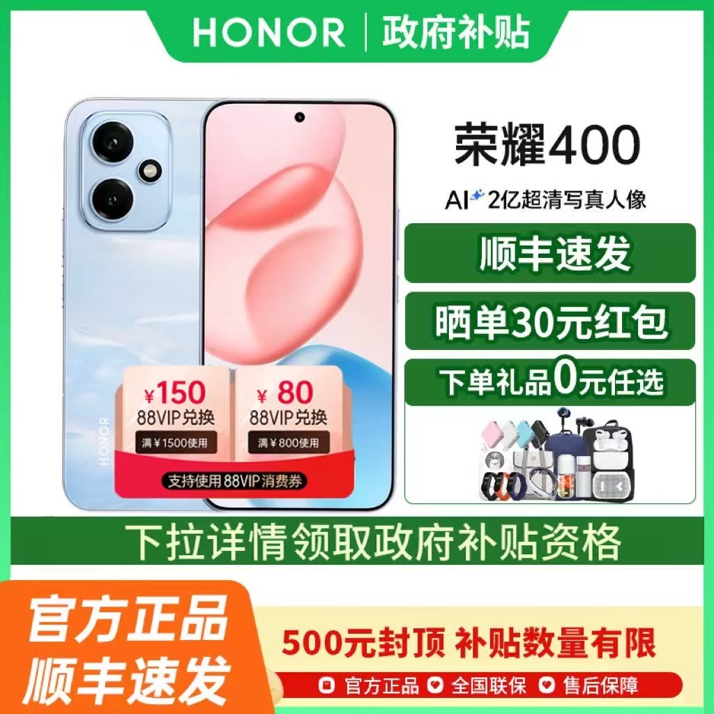 荣耀 HONOR 400 手机搭载第四代骁龙7芯片,性能强劲运行流畅,轻松应对日常使用与游戏娱乐需求,配备12GB运行内存与256GB存储空间,满足多任务处理与大容量存储要求,机身采用幻夜黑色设计,沉稳大气,外观精致手感出色,屏幕显示效果清晰细腻,拍照能力优秀,带来出色的拍摄体验,目前在天猫商城促销火热进行中,原价2777.00元,现可享国家补贴8.5折优惠,立减352.35元,最终到手价仅需1996.65元,性价比高,喜欢的朋友不妨趁此机会入手一台。