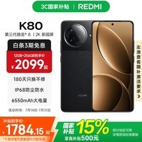 这款 12GB + 256GB 玄夜黑配色的红米 K80,搭载第三代骁龙 8(高通骁龙 8Gen3 处理器),原价 2099 元,参与满 1000 元打 9 折,15%起减 283.37 元,PLUS 专享立减 10.49 元优惠活动,下单 1 件,实付低至 1596.82 元。外观上有玄夜黑、雪岩白、山峦青、汐月蓝四款配色,直角边框搭配纯直屏,摄像模组是暴风眼设计,航空铝镜头环很有质感。屏幕用的是小米 15 Pro 同款小米龙晶玻璃 2.0,6.67 英寸 2K 护眼屏,支持 120Hz 刷新率等,护眼效果出色。性能上,配备 LPDDR5X 内存 + UFS 4.0 闪存,搭配 D1 游戏独显,还有首发的 3D 双环路凹凸台冰封循环冷泵,散热好。内置 6550mAh 小米金沙江电池,支持 90W 有线快充。影像方面,搭载光影猎人 800 传感器主摄,支持 OIS 光学防抖。它还预装小米澎湃 OS2,支持 IP68&IP69、X 轴线性马达等,功能十分丰富。这么实惠的价格,赶紧入手吧!