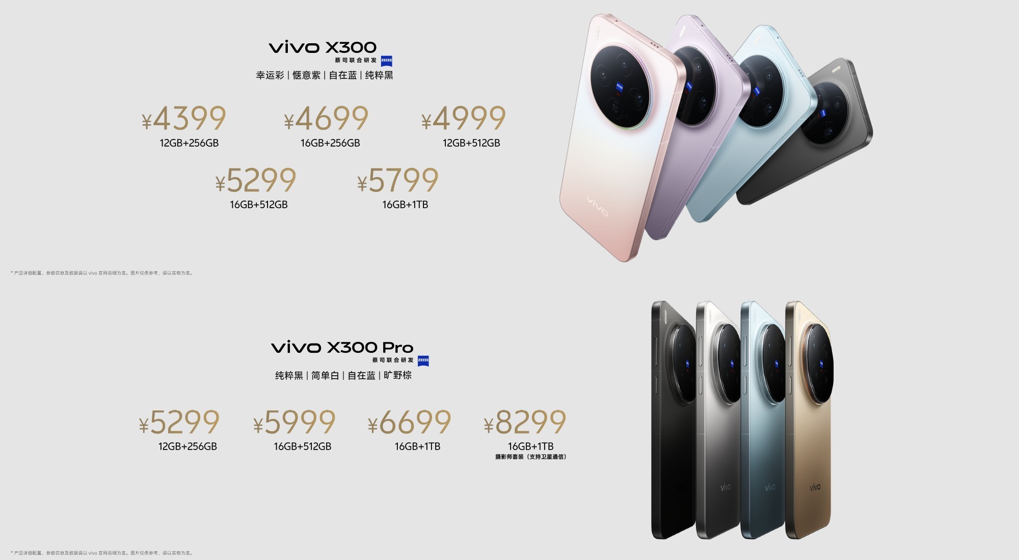 此次发布的vivo X300系列包含两款机型。其中,vivo X300售价4399元起,以其出色的性能和亲民的价格,为追求高性价比的消费者提供了优质选择;vivo X300 Pro售价5299元起,在配置和功能上进一步升级,满足对手机性能有更高要求的用户。