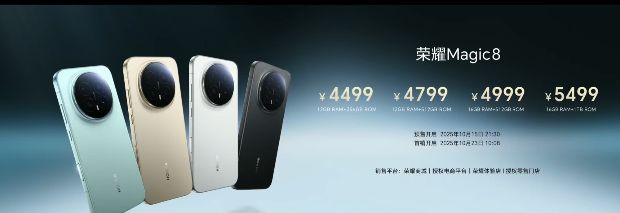 标准版4499元起!Pro版5699元起!荣耀Magic8系列正式发布。