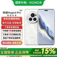 荣耀HONOR Magic6 Pro 5G手机 16GB+512GB 祁连雪版本现震撼促销,搭载第三代骁龙8旗舰芯片,配备LPDDR5X内存与UFS3.1闪存,性能强劲流畅,无论是大型游戏还是多任务处理都能轻松应对。机身采用“方圆星轮三摄”设计,结合3D智能仿形抛光工艺,金属中框搭配四曲面造型,厚仅8.9mm,重229g,手感圆润舒适,颜值出众。提供海湖青、绒黑色、祁连雪、麦浪绿、流云紫五种配色,全系标配巨犀玻璃,通过SGS多场景金标五星抗跌耐摔认证,耐用更安心。配备京东方6.8英寸OLED曲面屏,分辨率2800×1280,支持120Hz刷新率、10.7亿色显示与438PPI像素密度,行业首发360Hz超频同步显示技术,峰值亮度高达1600nit,搭配4320Hz超高频PWM调光和硬件级低蓝光,五大荣耀绿洲护眼技术让长时间使用也更护眼。影像系统实力强悍,后置5000万超动态可变鹰眼主摄+5000万广角微距主摄+1.8亿像素潜望式长焦,前置5000万超广角镜头+3D深感摄像头,配合荣耀计算摄影平台,快门响应更快,对焦更准,抓拍成片率大幅提升。内置第二代青海湖技术5600mAh大电池,低温环境下续航依旧稳定,支持80W有线快充、66W无线快充及7.5W无线反向充电,电力满满。更支持鸿燕卫星通信技术,可直连卫星实现双向语音与短信,在无地面网络时也能保持联络。搭载自研射频增强芯片C1+,信号发射提升41%,接收提升51%,全场景通信更强。运行全新MagicOS 8.0系统,带来基于意图识别的智能交互体验,“荣耀任意门”实现跨应用一步直达,“灵动胶囊”支持信息全局触达,智慧体验全面升级。
