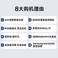 三星Samsung Galaxy Z Flip7 FE 国家补贴 大视野智能外屏 5000万像素 多模态Galaxy AI折叠屏手机 炫羽白 8GB+256GB