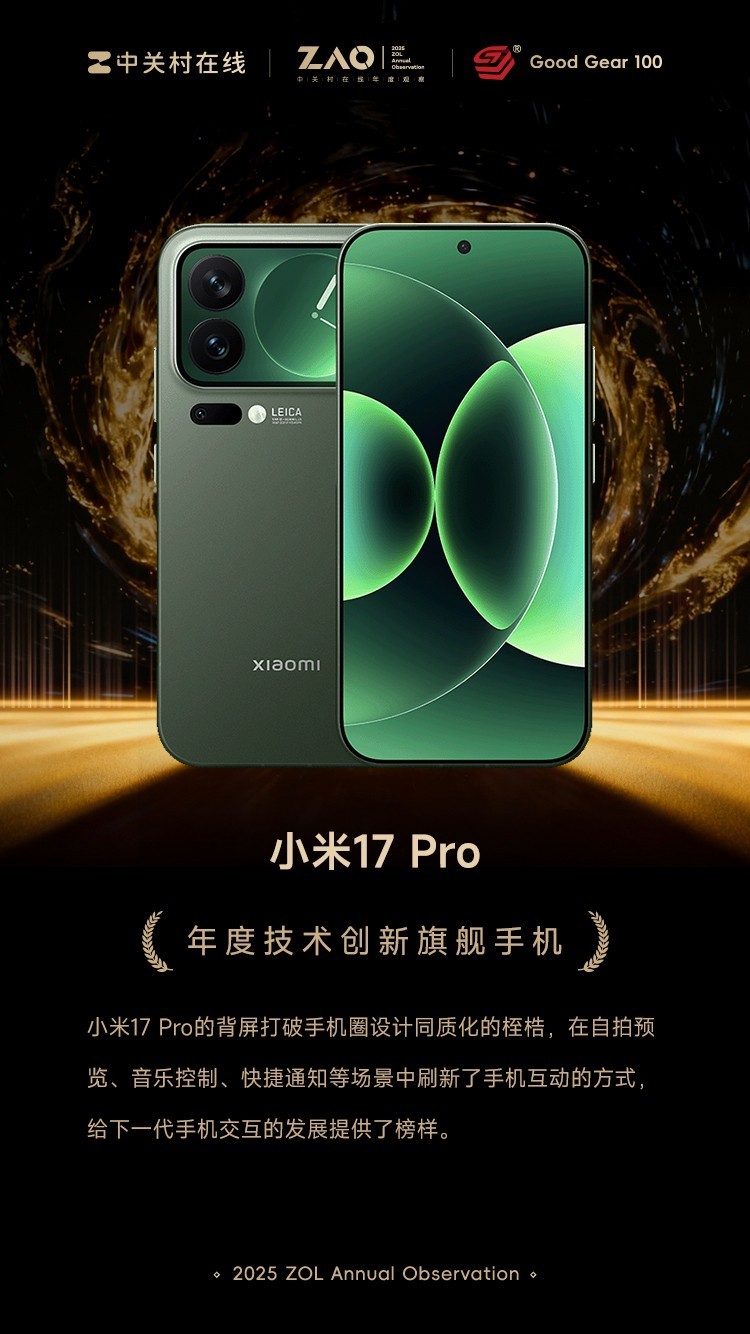 本文属于原创文章,如若转载,请注明来源:GG100 2025年度技术创新旗舰手机:小米17 Prohttps://mobile.zol.com.cn/1096/10963747.html