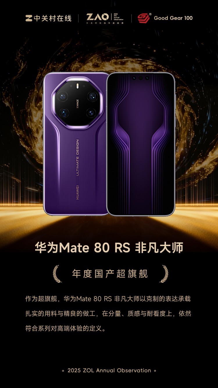 本文属于原创文章,如若转载,请注明来源:GG100 2025年度国产超旗舰:华为Mate 80 RS 非凡大师https://mobile.zol.com.cn/1096/10964240.html