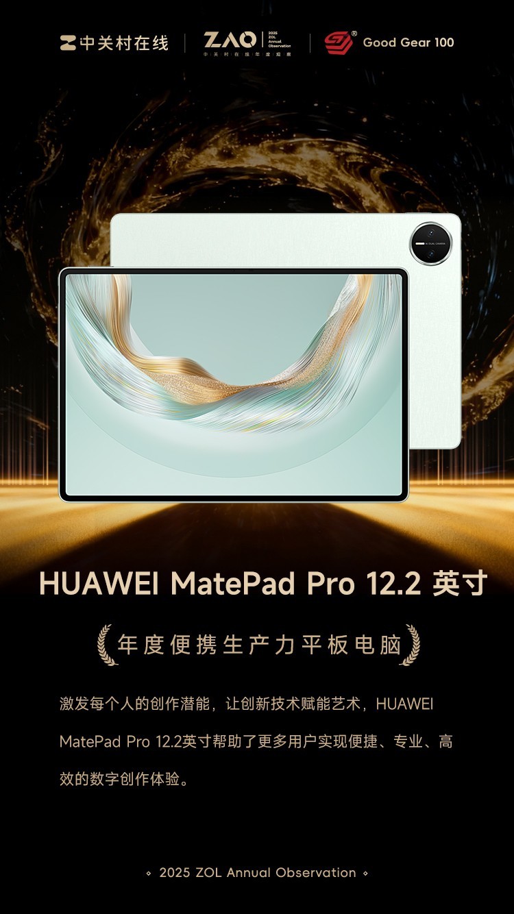 本文属于原创文章,如若转载,请注明来源:GG100 2025年度便携生产力平板电脑:HUAWEI MatePad Pro 12.2 英寸https://mobile.zol.com.cn/1096/10964640.html