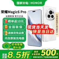 想换一部高性能5G手机的朋友们有福啦!荣耀 Magic6 Pro 5G手机 16GB+512GB祁连雪配色款正在热卖。Magic6系列采用方圆星轮三摄,经3D智能仿形抛光工艺打造,造型精致优雅。金属中框搭配四曲面设计,厚度仅8.9mm,重229g,握持感出色。它有海湖青、绒黑色、祁连雪、麦浪绿、流云紫五种配色可选,全系支持巨犀玻璃,通过SGS多场景金标五星抗跌耐摔认证,坚固耐用。搭载京东方6.8英寸28001280 OLED曲面屏,120Hz刷新率、10.7亿色显示,行业首发360Hz超频同步显示技术,峰值亮度达1600nit,438PPI像素密度,画面清晰绚丽。还具备五大荣耀绿洲护眼技术、4320Hz超高频PWN调光和硬件级低蓝光,呵护用眼健康。影像上,后置5000万超动态可变鹰眼主摄+5000万广角微距主摄+1.8亿潜望式长焦,前置5000万像素超广角镜头+ 3D 深感摄像头,搭配荣耀计算摄影平台,抓拍效果好。核心配置上,搭载第三代骁龙8旗舰芯片、LPDDR5X内存和UFS3.1闪存。内置第二代青海湖5600mAh电池,低温续航持久,支持80W快充、66W无线快充和7.5W无线反向充电。此外,它支持鸿燕卫星通信技术,可手机直连卫星服务、实时语音双向短信,全系搭载自研射频增强芯片 C1+,发射和接收收益大幅提升。系列搭载全新荣耀 MagicOS 8.0系统,带来基于意图识别的人机交互体验、荣耀任意门和灵动胶囊等实用功能。