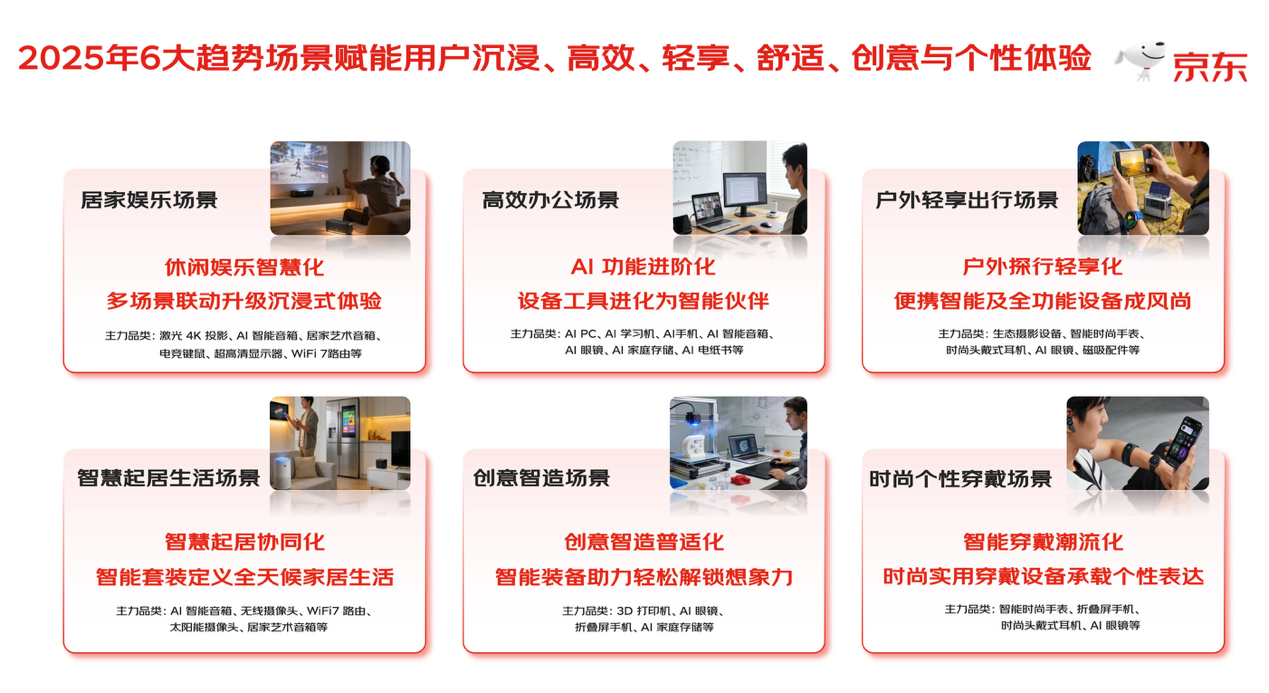在技术快速迭代与消费理念升级的双重驱动下,3C数码消费正从单纯的“参数比拼”,转向对“场景融合”与“情感共鸣”体验的双重追求。京东发布的《20253C趋势品类白皮书》精准捕捉了这一转变,系统性地阐释了驱动行业增长的六大核心消费趋势。