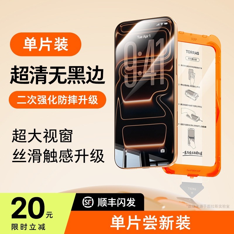 图拉斯无界膜是一款专为苹果系列手机打造的优质钢化膜,它适用于苹果17、iPhone17promax、16pro、15、14等机型。这款钢化膜没有黑边设计,能带来更完整的屏幕视觉体验。具备防摔功能,可以很好地保护手机屏幕,还拥有无尘仓设计,能减少贴膜时产生灰尘的困扰。同时,它具有护眼的AR防窥效果,还能有效抵御指纹,让手机屏幕时刻保持干净清晰。