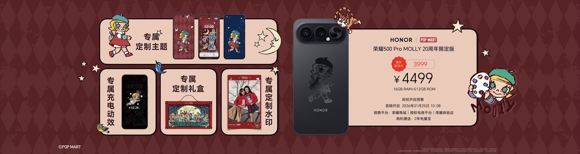 对于想要入手新机的消费者来说,此次活动更是福利满满。购买荣耀500 Pro MOLLY 20周年限定版(16 + 512GB)的用户,将获赠豪华礼盒。该限定版手机售价为4499元,在国家补贴政策的支持下,消费者仅需3999元即可将其收入囊中,性价比极高。