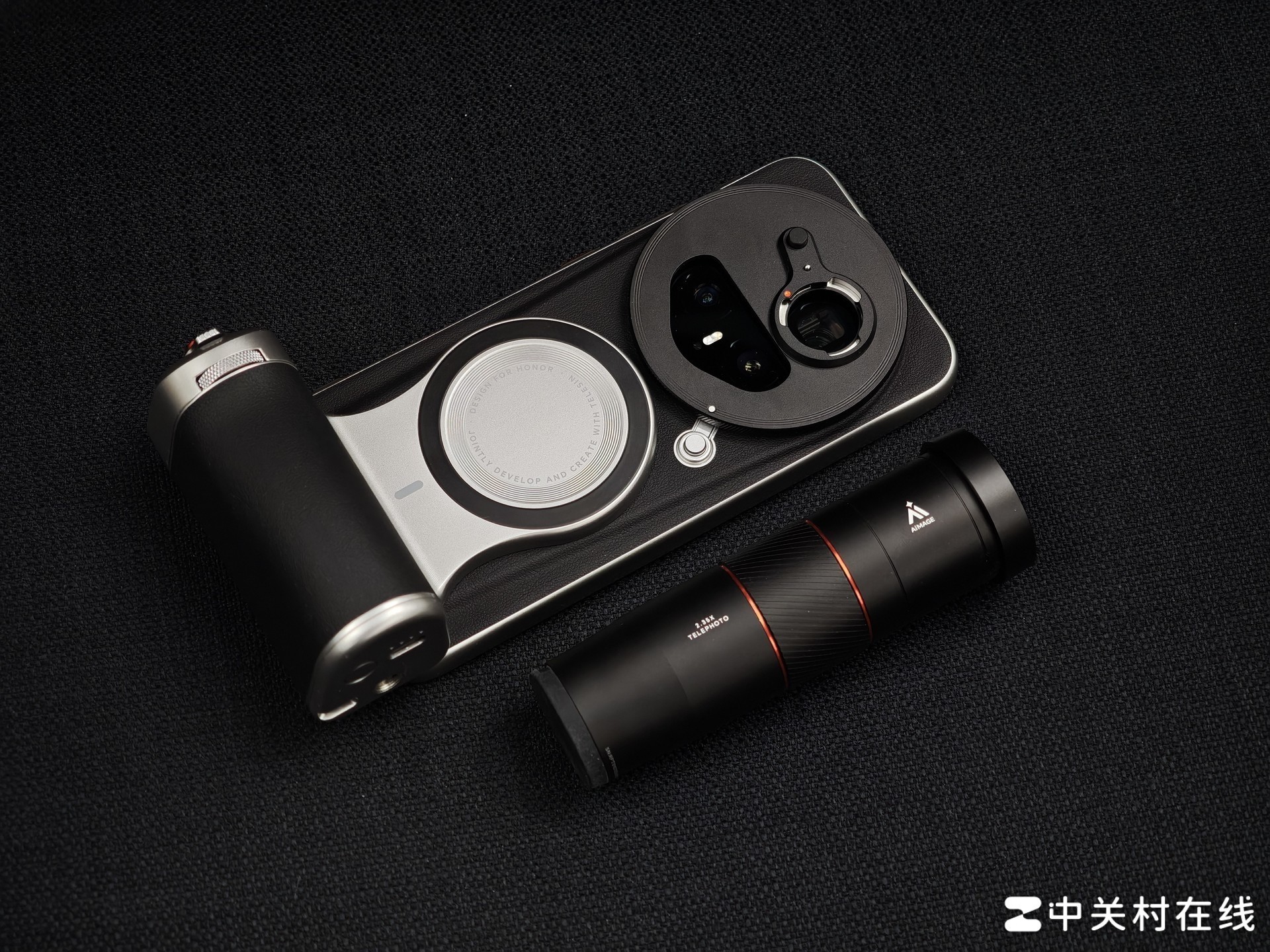 【ZOL中关村在线原创技术解析】在荣耀Magic8 RSR 保时捷设计发布的同时,荣耀也正式推出了Magic8 RSR保时捷设计专业影像套装。荣耀Magic8 RSR 保时捷设计专业影像套装内含2.35x长焦增距镜、专业影像保护壳、磁吸手柄等配件,其中2.35x长焦增距镜可实现等效200mm焦段,这款2.35x长焦增距镜由9组13片高透光学玻璃镜片精密构成。