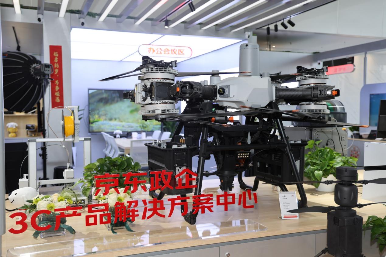 国产化区则集中展示了以联想、长城等为代表的品牌设备,彰显了对信息技术应用创新与安全可控需求的坚实支撑。大件区陈列了览众无人机、翼飞穿越机等专业级装备,展现了其在特种作业与内容创作等领域的解决方案实力;小件区则汇聚了vivo旗舰手机、韶音运动耳机等高品质个人设备;中心还设有办公会议区与直播区,共同勾勒出智慧办公、数字内容创作的未来图景。这些区域构建了从专业生产工具、核心办公设备到员工关怀产品的完整体验闭环,系统诠释了京东政企业务服务于办公日用、员工福利、生产辅助等企业全链路采购需求的综合能力。