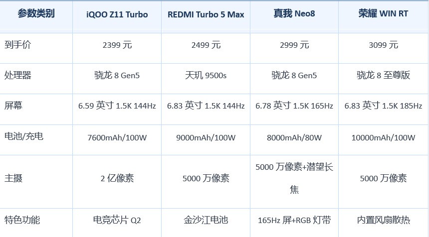 【ZOL中关村在线原创导购】2026年寒假将至,对于广大学生群体而言,选购一款性能出色、价格合适的手机成为当务之急。在2000至3000元价位段,各大厂商纷纷推出极具竞争力的产品,无论是性能、续航还是影像体验都有了质的飞跃。本文将聚焦四款热门机型——iQOO Z11 Turbo、REDMI Turbo 5 Max、真我Neo8、荣耀WIN RT,从处理器性能、屏幕素质、续航能力等多维度出发,帮助学生们找到最适合自己的手机。