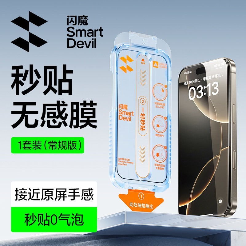 闪魔推出了适用于多款苹果手机的钢化膜,包括无尘舱适用苹果16、iPhone16promax、iPhone15Pro、iPhone13、iPhone15promax、iPhone15/16plus、iPhone14等机型。它具备抗蓝光功能,能有效保护眼睛,采用高清玻璃材质,能为手机屏幕提供清晰的视觉效果和全面的保护。