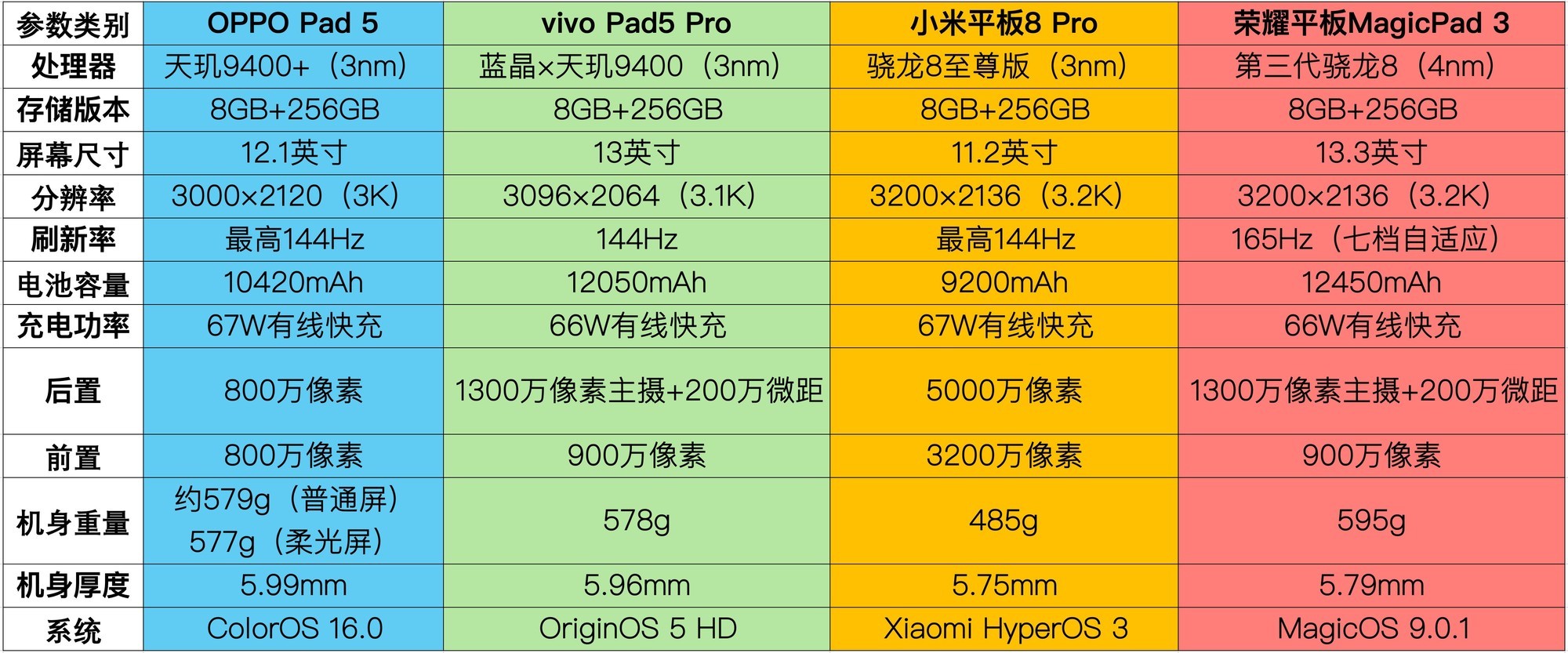 新学期新平板,这四款产品各有侧重:OPPO Pad 5护眼柔光屏+AI学习功能适合笔记重度用户,vivo Pad5 Pro专业文档能力+跨屏协同适合学术研究和多设备场景,小米平板8 Pro性能旗舰+便携设计适合需要高性能和专业软件的用户,荣耀平板MagicPad 3大屏长续航+跨生态兼容适合追求全能性和大屏体验的用户。选择平板不能只看参数,更要结合自己的学习习惯、专业需求、使用场景和生态习惯。按需求选更踏实,买自己喜欢的就好。希望这份榜单能帮你找到最适合的新学期学习伙伴,开启高效学习新篇章。