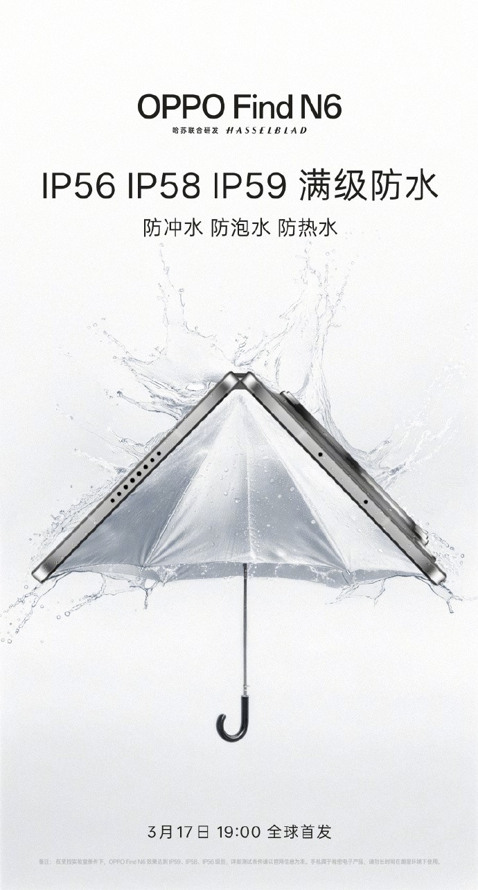 近日,OPPO正式官宣,全新折叠旗舰OPPO Find N6将于3月17日19:00全球首发,凭借“无感折痕,久用平整”的核心定位,抢在苹果之前完成新一代折叠屏技术突破,同时搭载满级防水与极寒耐用黑科技,彻底打破折叠屏“脆弱易损”的行业痛点,重新定义高端折叠旗舰的耐用标准。