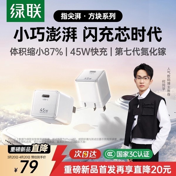 本文属于原创文章,如若转载,请注明来源:绿联45W氮化镓充电器首发直降50元!https://mobile.zol.com.cn/1151/11511070.html