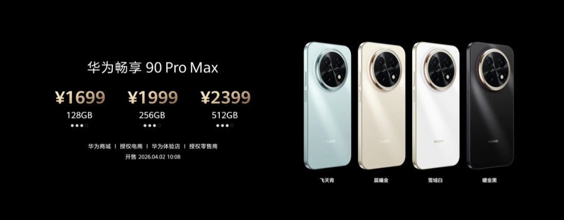 本文属于原创文章,如若转载,请注明来源:华为畅享系列新品价格公布:畅享90 Pro Max起售价1699元,4月2日开售https://mobile.zol.com.cn/1153/11532255.html