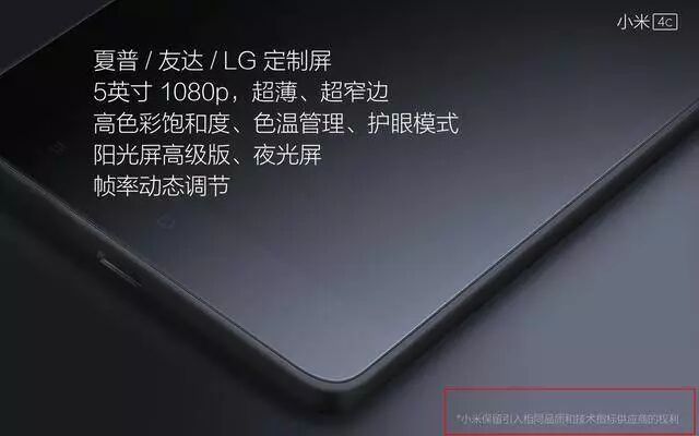 甚至于到了小米 4c 的时候,直接在官网下面打上一行字,如今它已经很少在官方页面提及屏幕供应商: