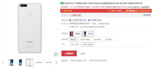 配置方面,360 N7月岩白采用了5.99英寸In-cell全贴合屏幕,分辨率为2160×1080,搭载高通骁龙660处理器,配备6GB内存+128GB存储,电池容量为5030mAh,续航可以连续游戏18小时或播放视频21小时,支持18W QC3.0快充。