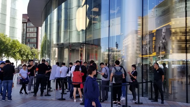 【王府井】今年苹果的吸引力确实不大,从排队的人数就能看出来