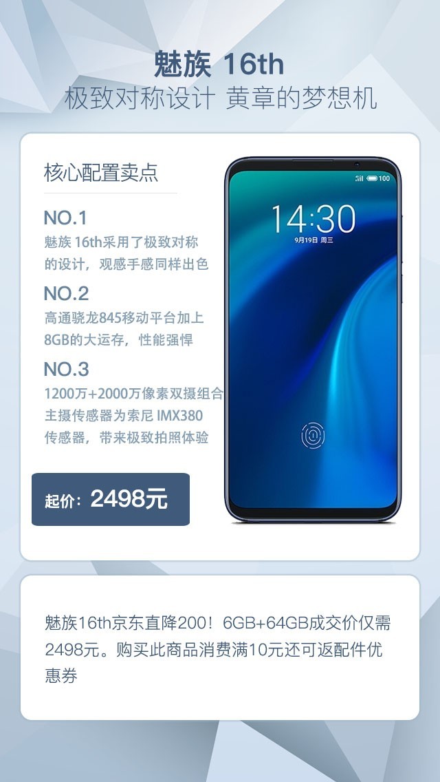 ¥¥¥魅族16th京东直降200!6GB+64GB成交价仅需2498元¥¥¥