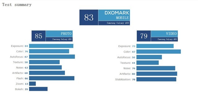 DxO给出打分概述:确保照片得分为85分,A50适用于静止照片,特别是在阳光充足的条件下,曝光良好,色彩呈现良好,并且通常可以获得准确的白平衡,确保拍摄出令人愉悦的照片。