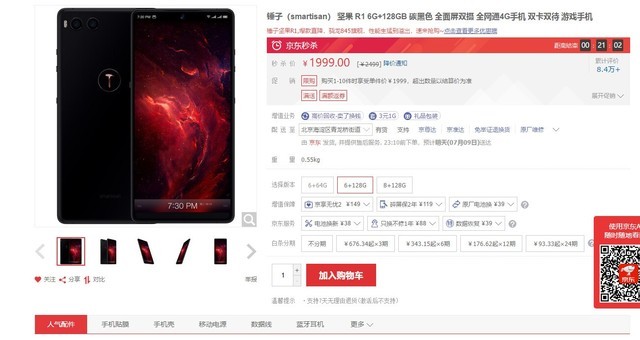 中关村在线消息:锤子科技“最后的旗舰”坚果R1目前在京东锤子科技官方旗舰店已跌破2000元,6+128GB版本仅需1999元即可入手,其搭载骁龙845移动平台,配备横向线性马达,内置3600mAh电池,喜欢的朋友可以关注一下。