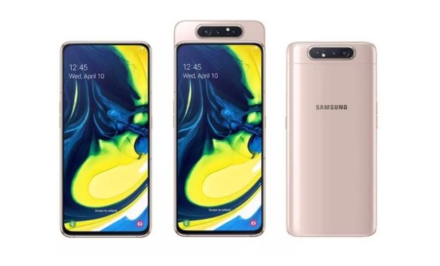 Galaxy A80 采用了升降 + 翻转式摄像头设计,后摄、前摄合二为一,相机方案为 4800 万像素主摄 + 800 万像素超广角镜头 + 3D TOF 镜头。