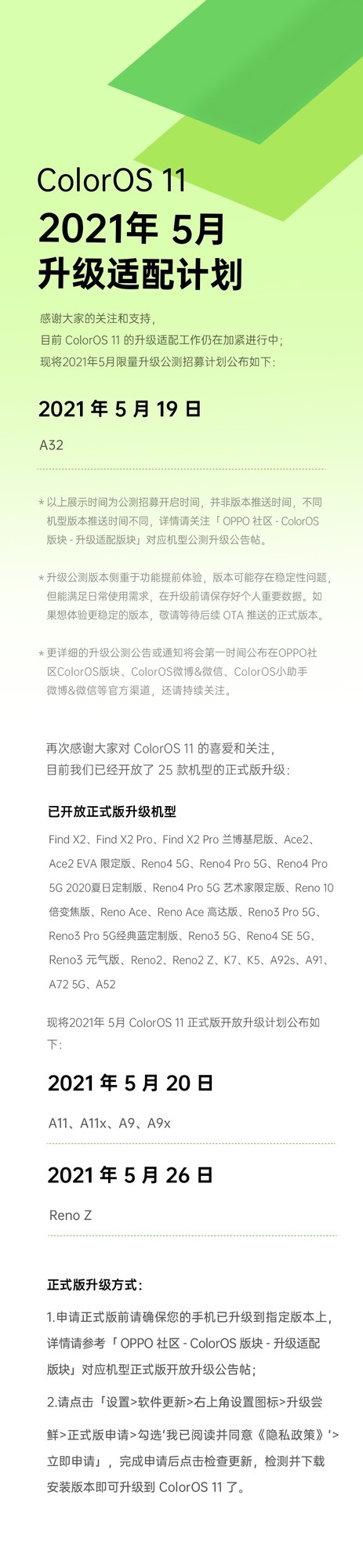 今日,OPPO 官方公布了 ColorOS 11 5 月升级适配计划。