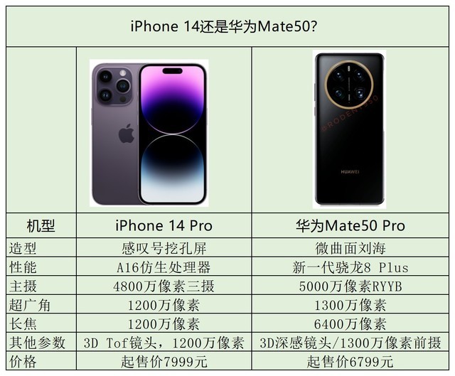 进入九月,华为和苹果接连发布了两款重磅旗舰新机,华为Mate 50系列和iPhone 14系列,这让很多准备换机的朋友产生了幸福的烦恼。那么华为Mate 50 Pro和iPhone 14 Pro究竟该买谁呢?先看配置。