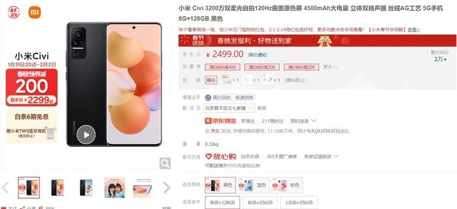 小米 Civi 8GB+128GB版当前售价2499元,领取满减200元优惠券,到手价仅2299元,其堪称小米历史上最美手机,搭配不错的性能,综合性价比非常不错,对手机颜值要求比较高的小伙伴儿们可以关注一下!