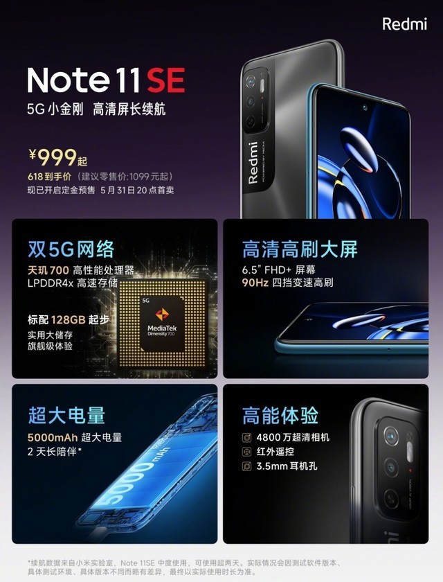 本文属于原创文章,如若转载,请注明来源:999元起!Redmi Note 11 SE发布:5G小金刚http://mobile.zol.com.cn/793/7931388.html