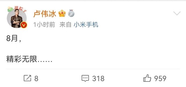 8月1日消息,今天卢伟冰发文称,8月精彩无限,结合此前爆料的现在,这大概率是暗示Redmi K50 Ultra新机即将发布。