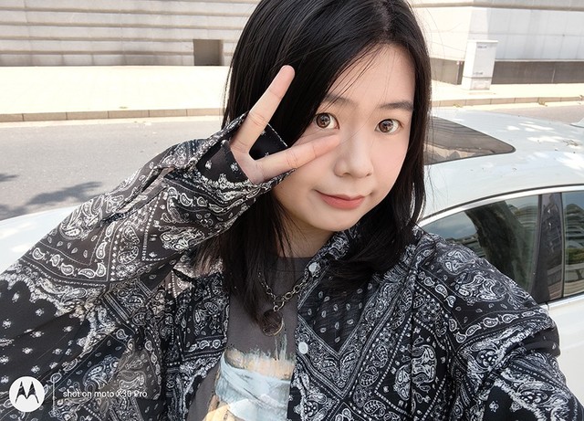 前置挖孔自拍是6000万高像素,不过对于爱自拍的小姐姐来说,自然不想皮肤纹理上展示精细的毛孔细节,因此默认模式下相机系统也是推荐使用1500万像素,这个自拍表现还是得到了图中小姐姐的认可。