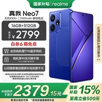 realme Neo7 5G手机,性能与颜值兼备的旗舰之作!这款16GB+512GB大存储版本,现在京东活动价仅需2799元,叠加国补15%、最高补贴500元以及多重优惠券,最终到手价低至2302.65元,堪称近期超值好价!作为realme于2024年12月11日发布的旗舰机型,Neo7拥有潜航紫在内的三款时尚配色,搭配轻薄机身设计,重量约213.4g,厚度仅8.56mm。其搭载6.78英寸1.5K京东方8T LTPO窄边直屏,支持1~120Hz自适应刷新率和全亮度类DC调光,局部峰值亮度高达6000尼特,带来震撼视觉体验。性能方面,天玑9300+处理器配合LPDDR5X+UFS4.0组合,搭配大气流冷锋散热系统,确保长时间稳定输出。7000mAh超大电池与80W快充完美解决续航焦虑,而后置双摄与前置1600万像素镜头更支持多项AI拍摄功能,轻松记录生活美好瞬间。此外,该机还具备IP68+IP69满级防水防尘、苍穹通信系统2.0、立体声双扬声器等多项实用功能,全面满足日常使用需求。抓住机会,以2302.65元的超值价格入手这款全能旗舰吧!