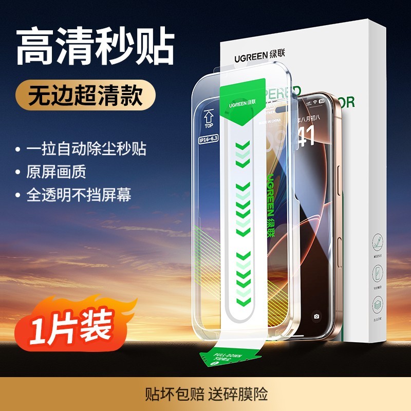 绿联推出的这款适用于iPhone 16 Pro Max的钢化膜,也兼容苹果13/14Plus等机型。它采用大猩猩玻璃材质,具有高清保护功能。其颜色分类为全透明不挡屏,具备特种防爆性能,还有一拉自动除尘的特色,为你的手机屏幕提供全方位保护。在天猫商城,这款商品正在热销。