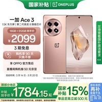 一加OnePlus Ace 3 5G手机16GB+512GB鸣沙金正在京东促销,原价2327.41元,现在最终到手价为2099元/件。