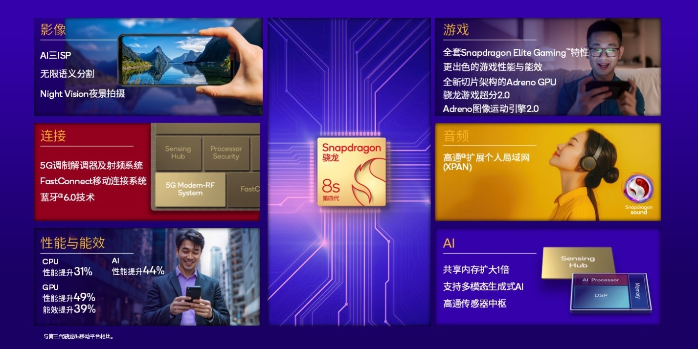 高通技术公司高级副总裁、手机业务总经理Chris Patrick表示:“第四代骁龙8s的发布,让旗舰级体验更加触手可及。凭借强劲的性能、出色的能效,以及在游戏、连接和AI方面的领先特性,该平台将为用户带来更出色的移动体验。”