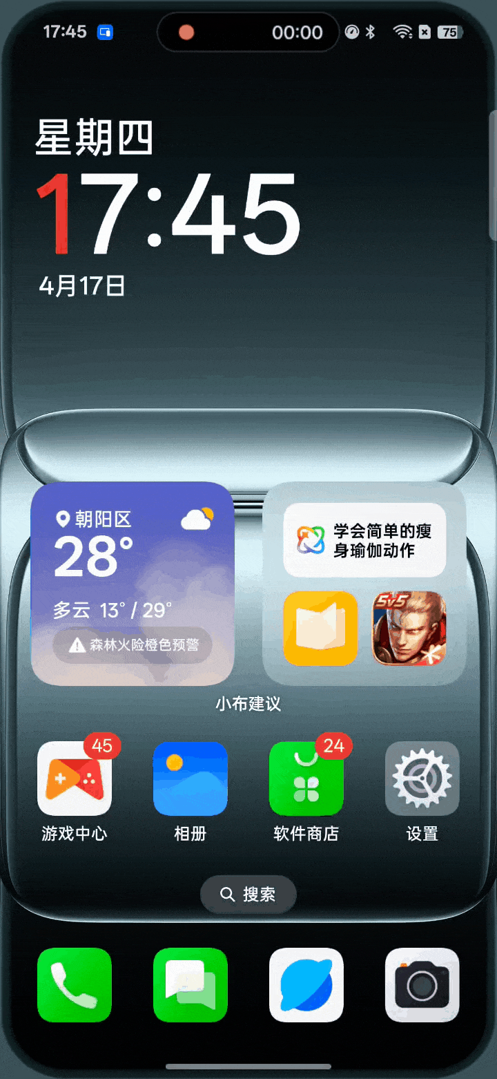 如图所示,我们在开启APP时,柔性回弹的动画效果观感丝滑灵动,让用户在与手机交互过程中感受到更加真实。