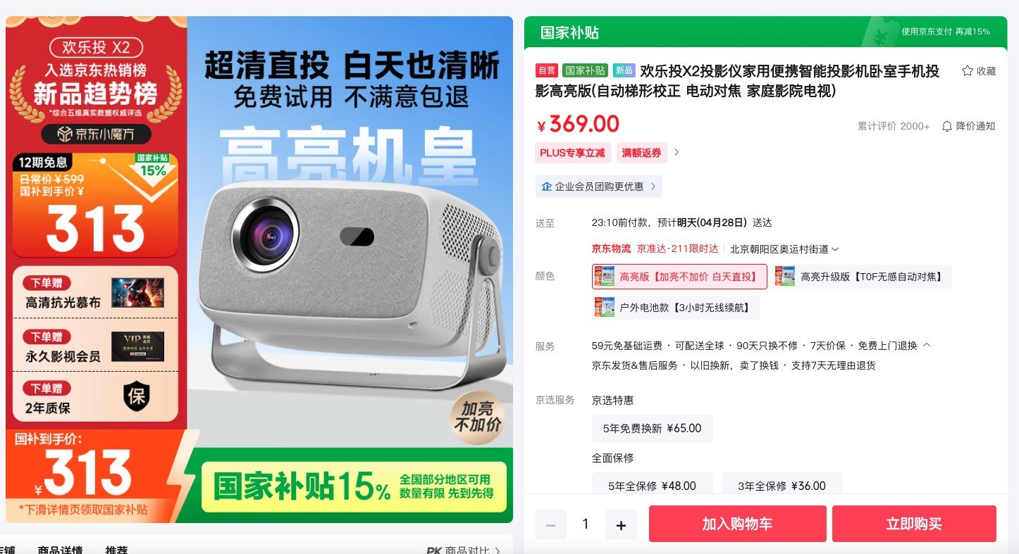 在火车上,想要享受大屏观影的畅快体验,便携式投影仪绝对是不二之选。以欢乐投旗下一款便携式投影仪为例,其价格在 367 元起,尺寸仅相当于一个小型保温杯,重量也不过几百克,轻松就能塞进背包,携带毫无负担。